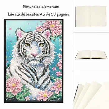 Características del Cuaderno Diamond Painting Tigre Blanco y Flores A5
