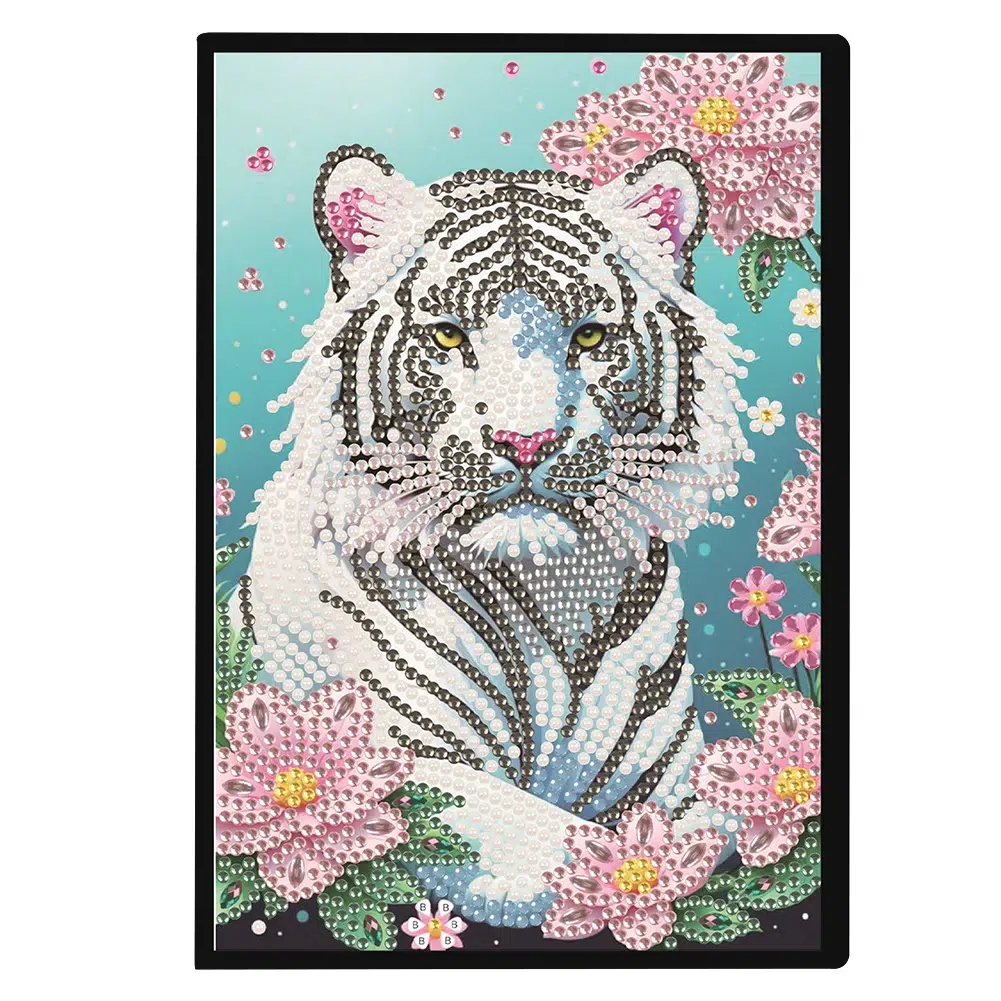Disfruta del arte en familia con el Cuaderno Diamond Painting Tigre Blanco y Flores A5 y crea recuerdos inolvidables desde el primer diamante.
