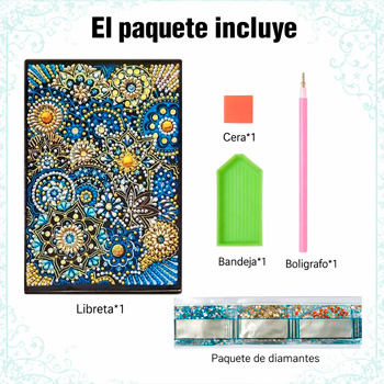 ¡Me encantó este cuaderno! Los colores azul y dorado son hermosos y el diseño mandala es muy relajante. La técnica de Diamond Painting le da un toque especial. ¡Lo recomiendo!