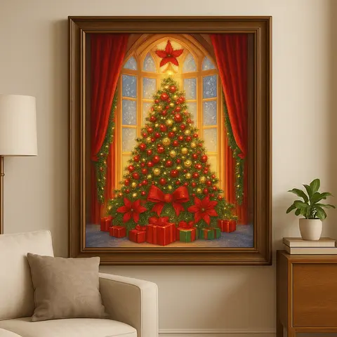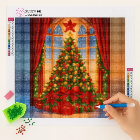 En Punto De Diamante cada diseño está hecho para despertar la ilusión de las fiestas, el Cuadro Árbol de Navidad Pintura con Brillos combina color, luz y emoción en una obra que refleja la esencia de la temporada.