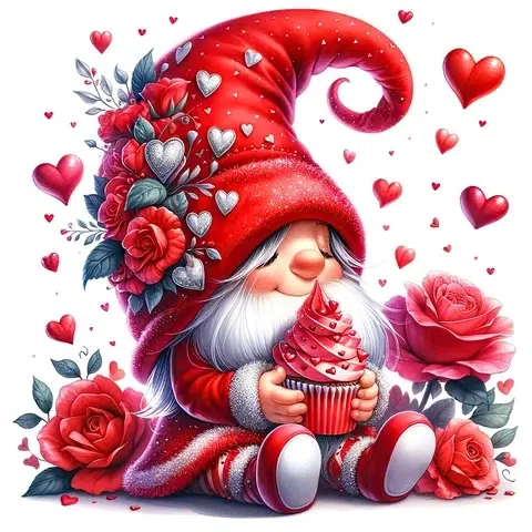 El Cuadro Duende amor cupcake Arte con Diamantes es una escena dulce y encantadora, llena de ternura y color, perfecta para regalar o decorar.