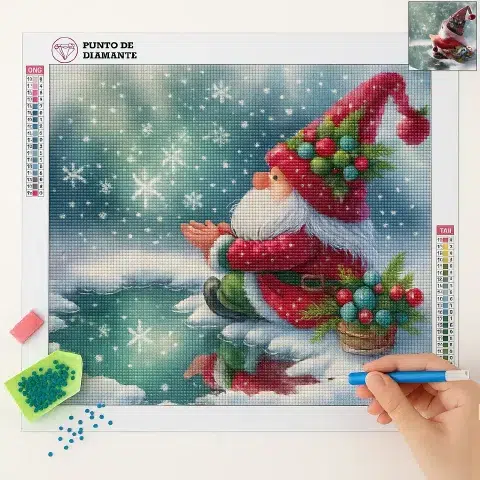 Disfruta del arte en familia con el Cuadro Duende Navideño Gorro Bordado de Luz y crea recuerdos inolvidables desde el primer diamante.