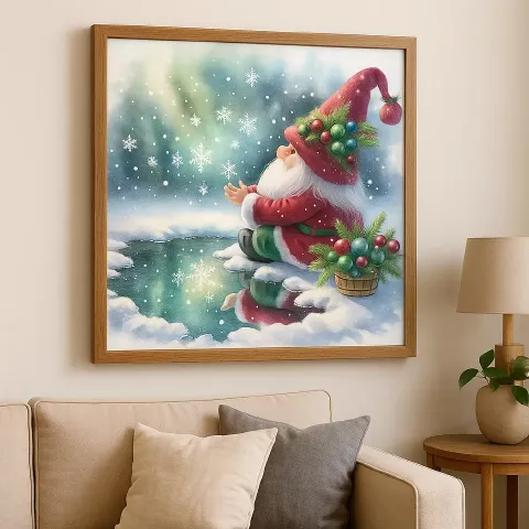El Cuadro Duende Navideño Gorro Bordado de Luz combina fantasía y espíritu festivo en un diseño brillante y alegre, perfecto para iluminar tu hogar en Navidad.