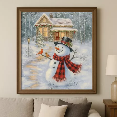 En Punto De Diamante cada cuadro es una oportunidad para disfrutar de la creatividad y el encanto de la temporada, el Cuadro Muñeco de Nieve Bordado con Diamantes combina ternura y brillo en una escena invernal que transmite calma y alegría.