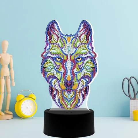 En Punto De Diamante, cada pieza combina creatividad y funcionalidad, como la Lámpara LED Acrílica Lobo Tribal Diamond Paint.